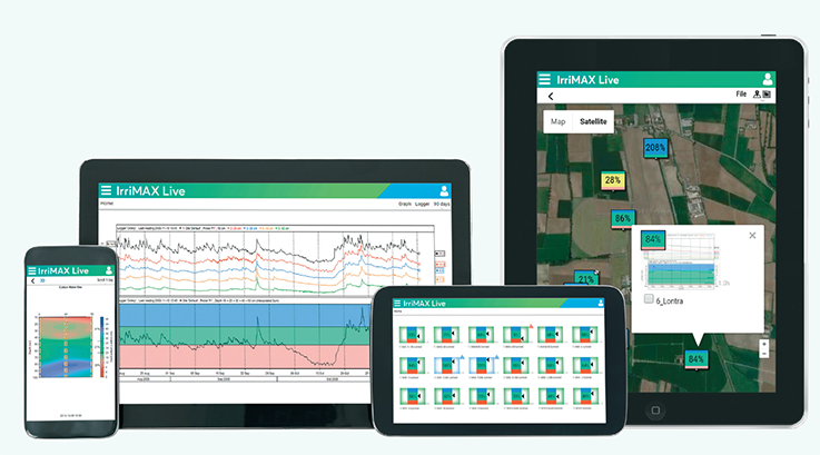 IrriMAX™ Live е интуитивна уеб-базирана платформа, която служи като онлайн портал за интегриран достъп и анализ на данните за влажност, соленост и температура на почвата.